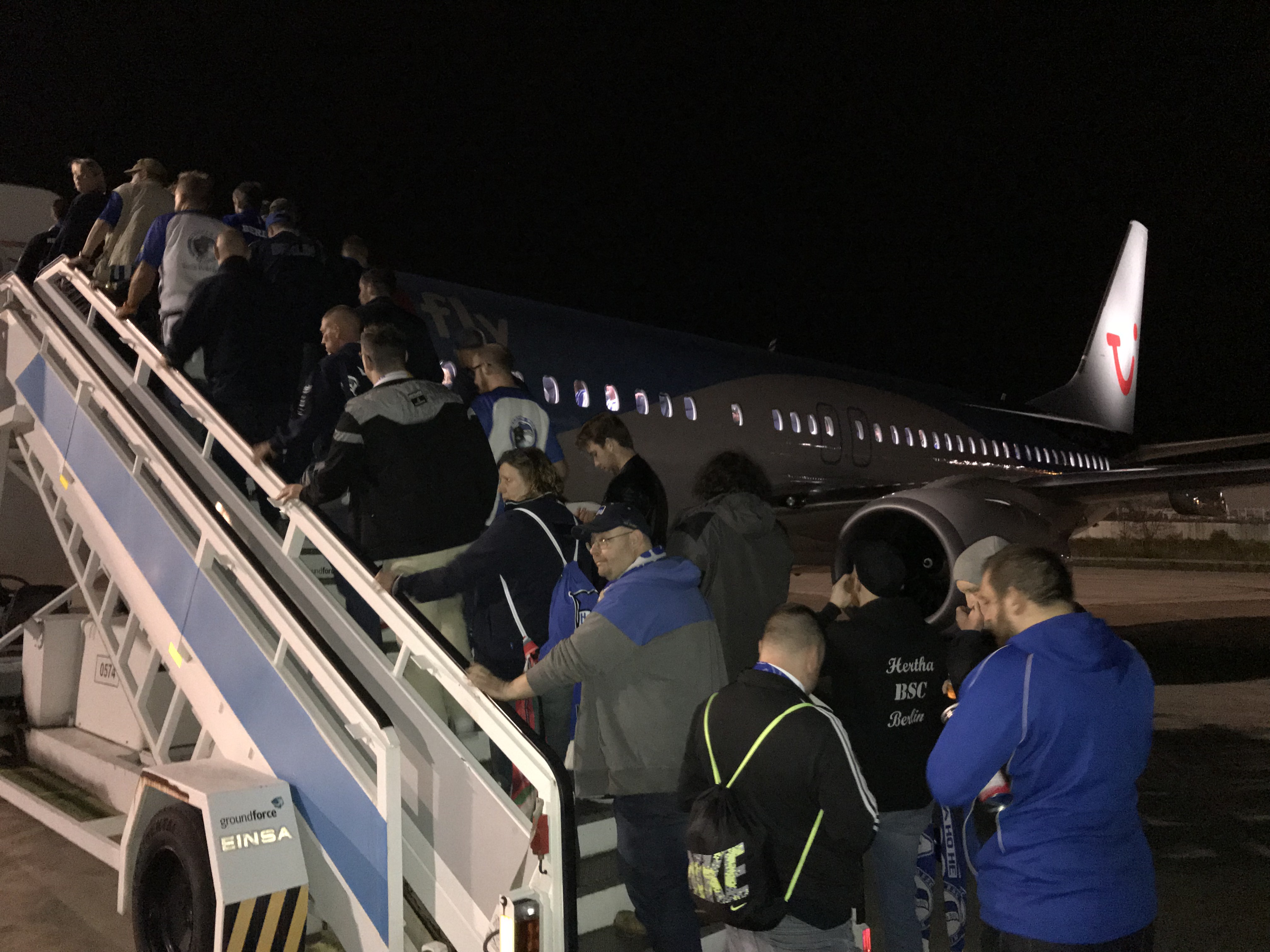 Hatte Hertha auch noch so gut gespielt, stand man nun mit leeren Händen da und hat keine Chance sich für die nächste Runde zu qualifizieren. Die Abreise wurde eine Geduldsprobe, die Transferbusse durften erst um 21:45 Uhr (eine Stunde nach Spielende) mit Polizeieskorte vors Stadion fahren um die Fans Richtung Flughafen zu bringen. Dennoch startete der Flieger überpünktlich und kam schon nach 2 Stunden Flugzeit in Berlin an. Bleibt zu hoffen, dass Hertha nicht all zu lange auf den nächsten europäischen Auftritt warten muss.